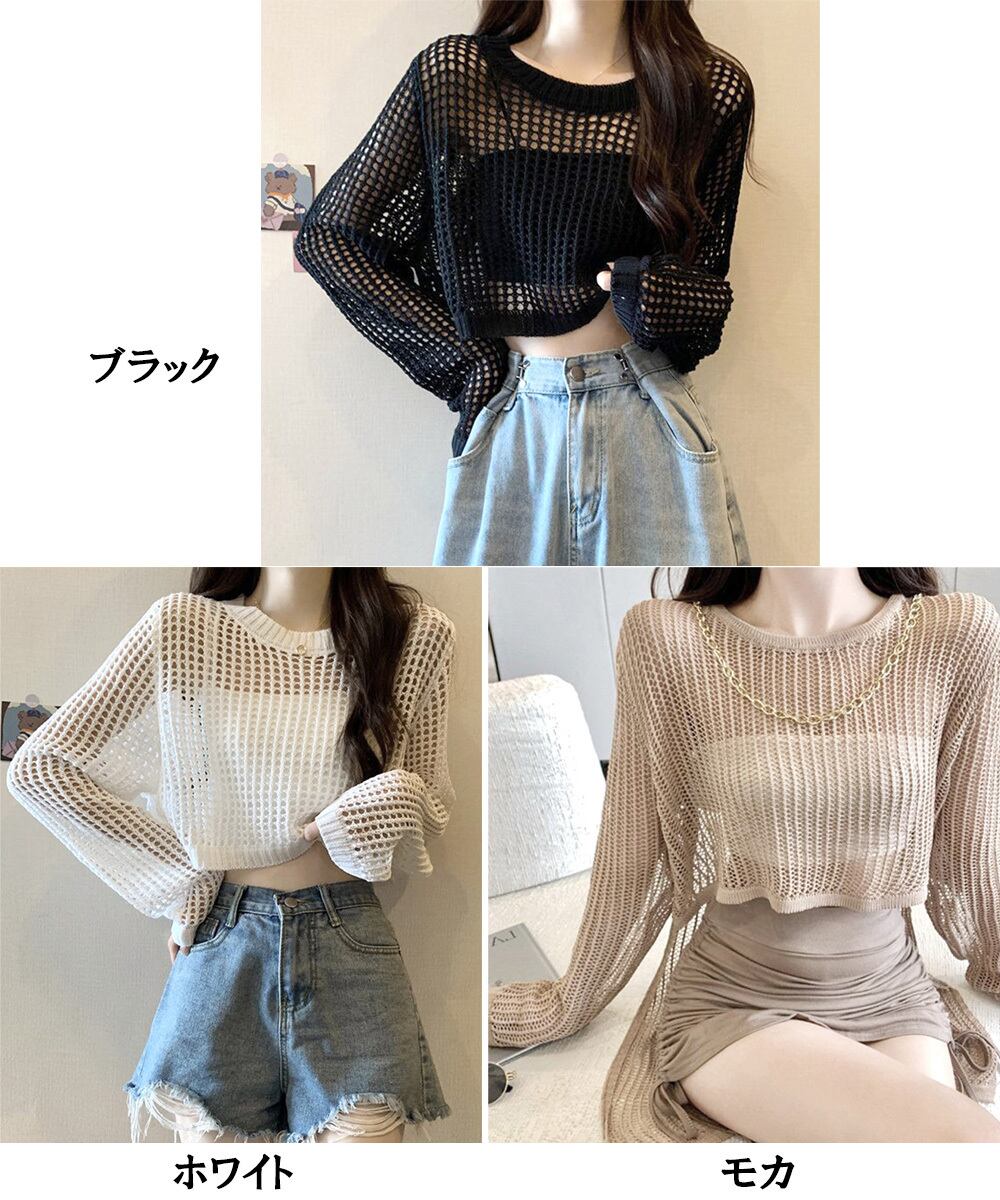 透け感 重ね着 ゆったり セクシー 透かし編みトップス