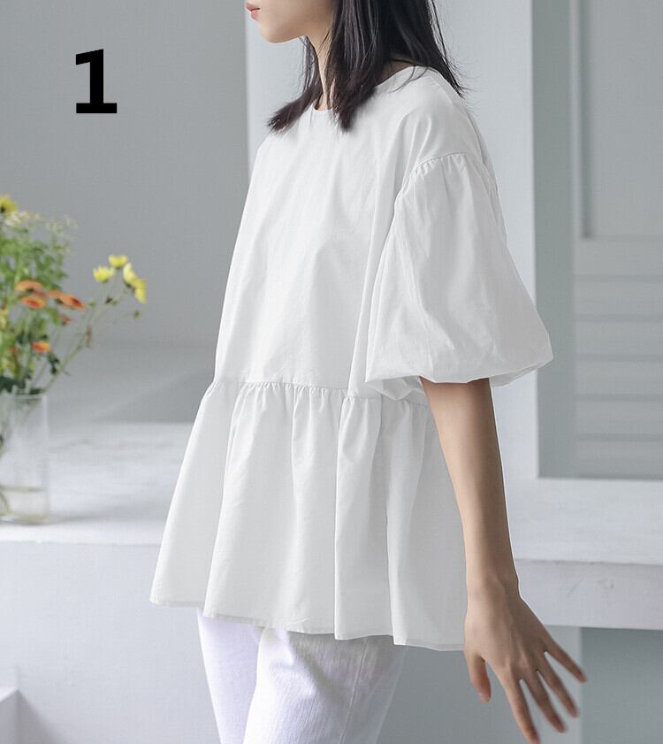 夏新作 ブラウス 人気シャツ トップス レディース 気質 ランタンスリープ 半袖