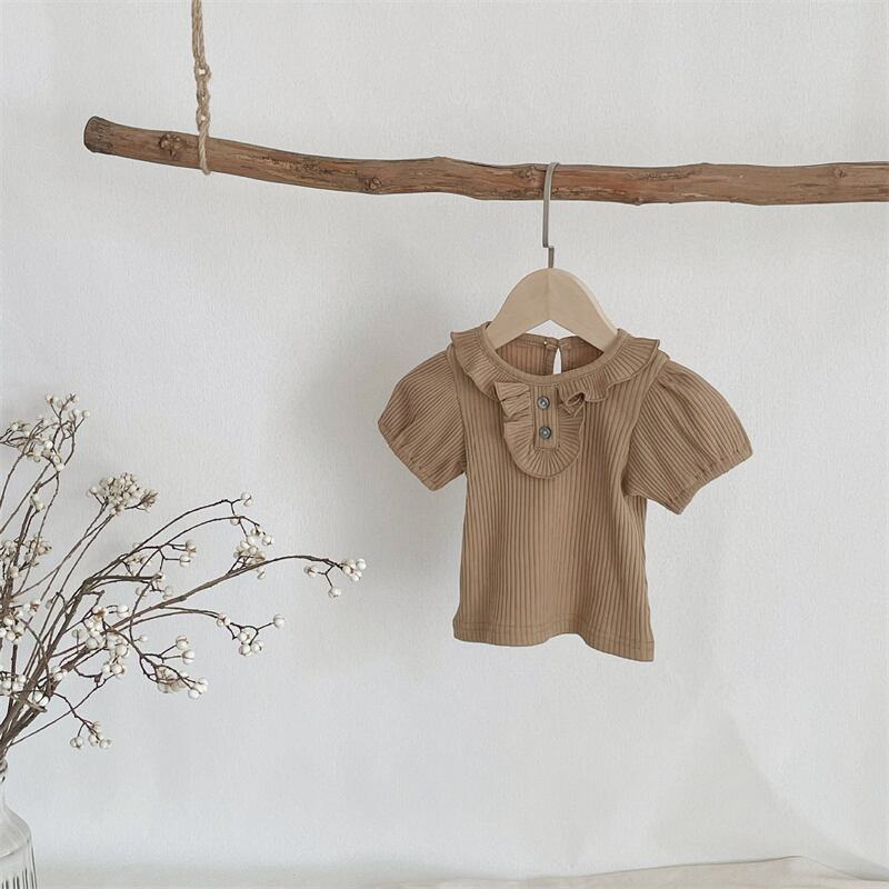夏新作 ベビー服 女の子 フリルカラー 半袖Tシャツ トップス 可愛い 柔らかい リブ 子供服