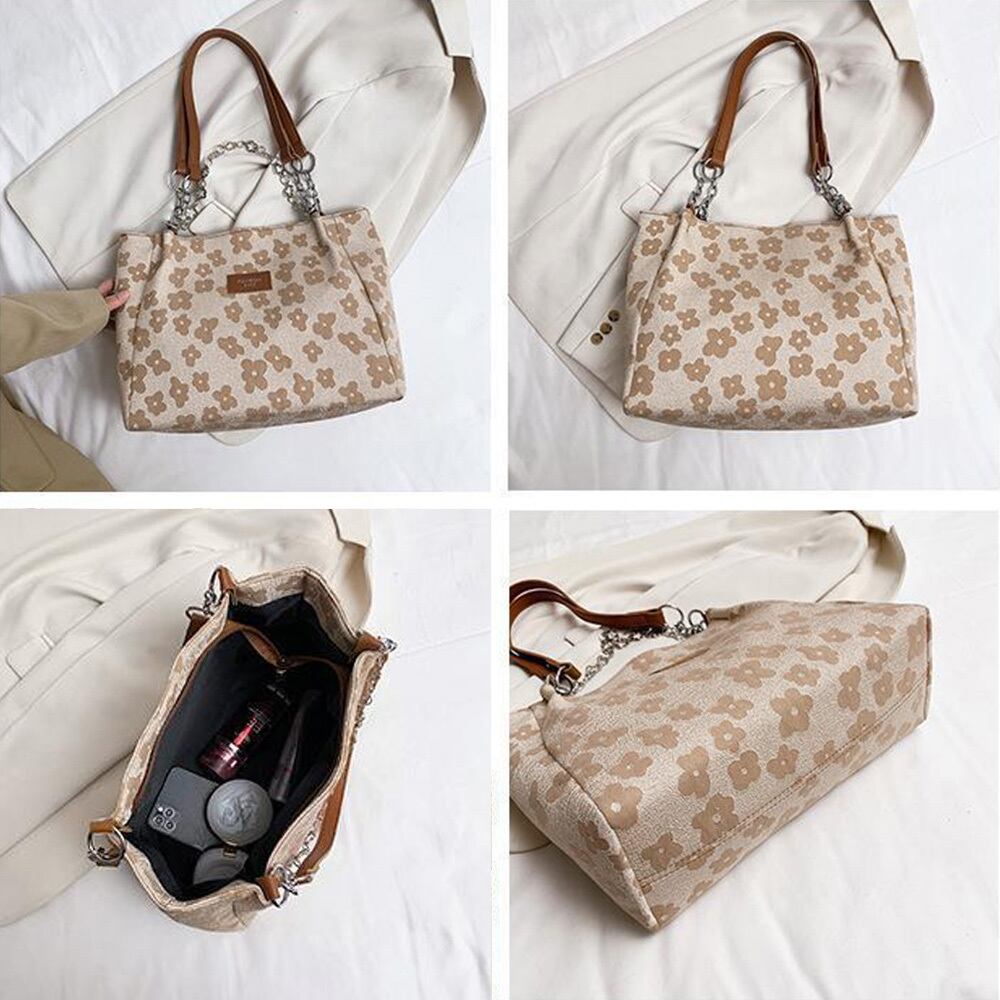 大人可愛らしいフラワーデザインの PUレザートートバック