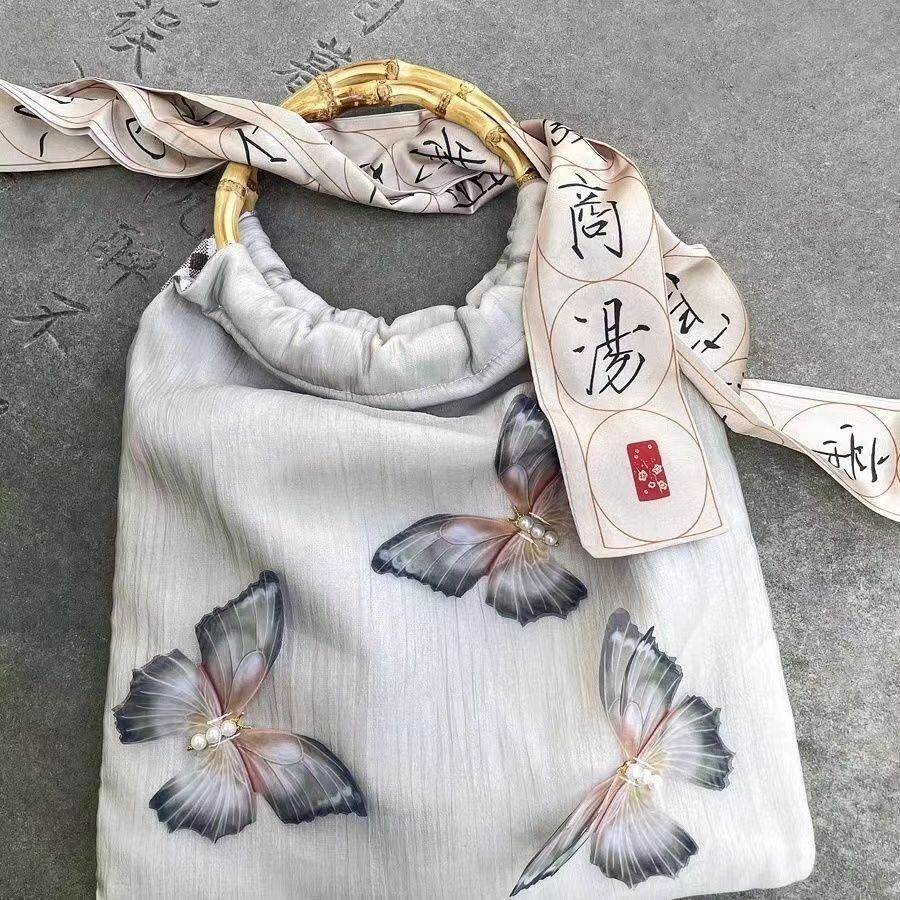 レディース ハンドバッグ ハンドル パール エレガント 蝶 バンブー風 浴衣 手持ち 蝶々