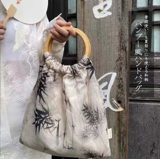 レディース ハンドバッグ ハンドル 和柄 お洒落 刺繍 ナチュラル バンブー風 浴衣 手持ち