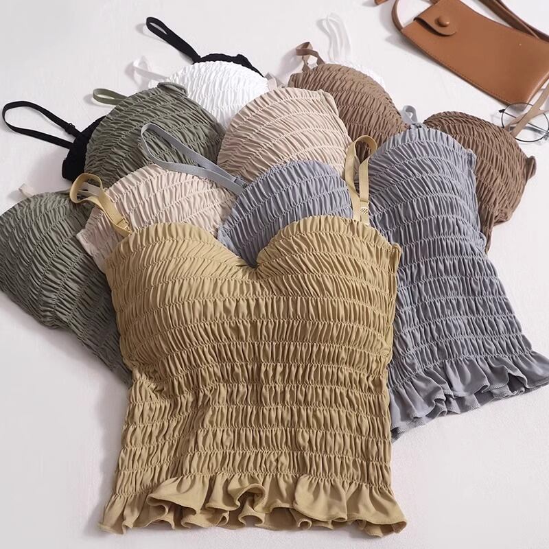 この夏のマストハブ♡ フリル&ギャザーのキャミソールで、細見え&スタイルアップ! 冷感素材で暑い日も快適に過ごせるよ