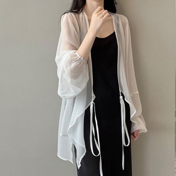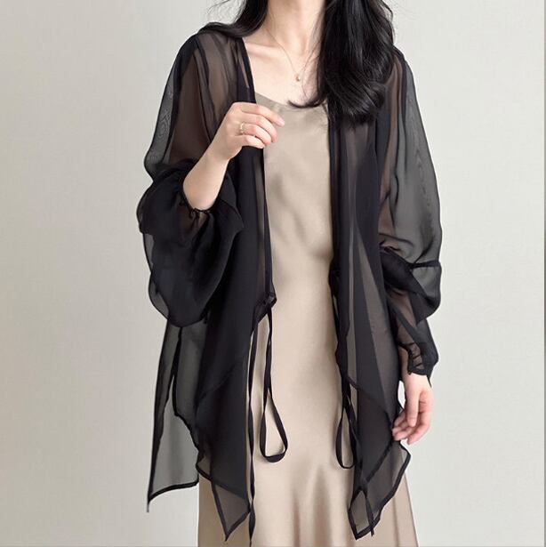 カーディガン ボレロ 冷感 シアー 透け感 アウター 無地 ひんやり 薄手 黒 ホワイト 夏カーデガン